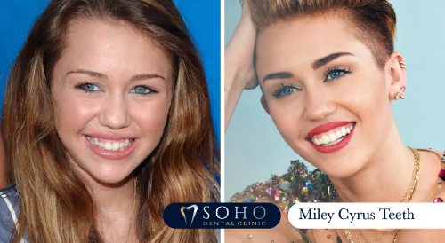 Miley Cyrus, the world-famous singer and actress, has also undergone a noticeable smile transformation throughout her career. In her younger years, Miley’s teeth appeared slightly crooked, with visible crowding and uneven shapes. As her career advanced, she decided to enhance her smile with orthodontic treatment and later turned to dental veneers for a more polished look.