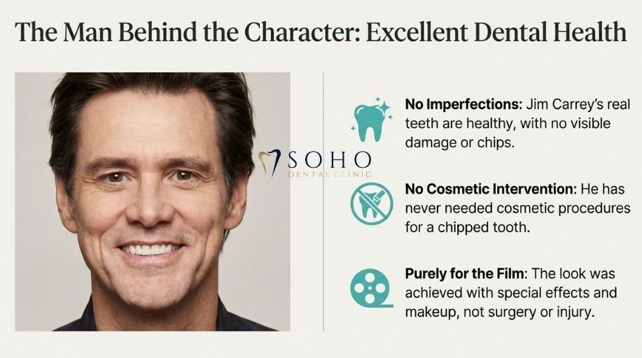 The tooth that Lloyd Christmas wears in *Dumb and Dumber* is exaggerated for comedic effect, emphasizing the character’s eccentric personality. In contrast, Carrey’s actual teeth are in excellent condition, and he has never needed cosmetic intervention for a chipped tooth.